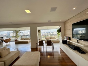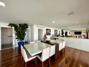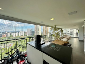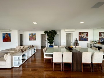 Apartamento com 250m² e 4 suítes disponível pra venda no melhor do Panamby. Amplo living pra 3 ambientes, uma varanda bem espaçosa com churrasqueira à carvão integrada à sala, sala íntima usada como brinquedoteca, mas você pode usar como escritório etc. Cozinha planejada, suítes confortáveis e repletas de armários(toda marcenaria do apartamento foi feita pala SCA., finos acabamentos e 4 vagas de garagem + depósito. Condomínio bem desejado com uma excelente infraestrutura de lazer na melhor loca integradalização do bairro e com uma vista incrível pra marginal.