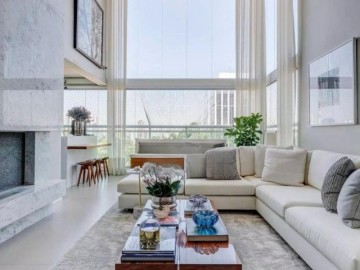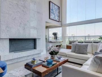 Localizado na melhor região do Brooklin-SP, este apartamento de 198m2 tem pé direito duplo de 5,60m e conta com 4 suítes (sendo uma master com closet), sala integrada para 3 ambientes, lavabo, mezanino com home office para 2 pessoas e cozinha americana totalmente equipada, 3 vagas de garagem.