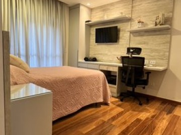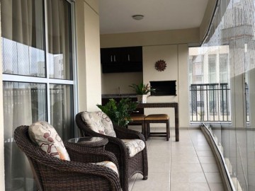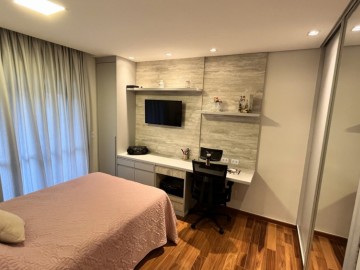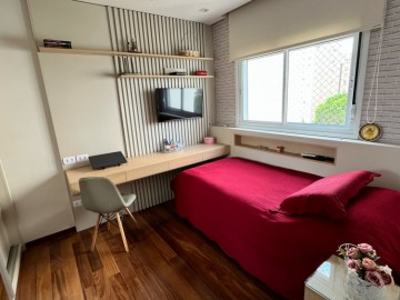 Apartamento à venda com área de 176 metros quadrados, possui 4 dormitórios (sendo 3 suítes, suíte máster com closet e sacada), 5 banheiros e 3 vagas de garagem.