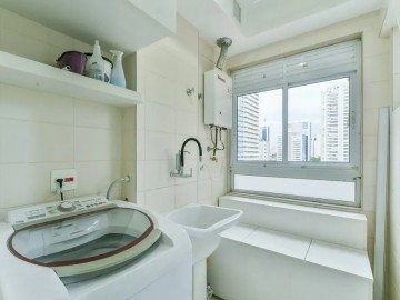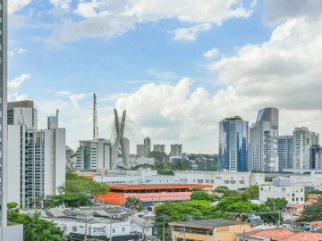 O apartamento possui uma série de comodidades para o dia a dia, incluindo ampla área de serviço, churrasqueira, cozinha funcional, gás individual, ar-condicionado, interfone, móveis planejados e piso em madeira. Além disso, conta com uma incrível vista para a Ponte Estaiada, tornando-o um espaço agradável para morar e receber.