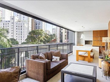 Luxuoso apartamento com varanda gourmet, são 310m² de puro conforto neste apartamento único! Living para 3 ambientes, varanda gourmet ampla, varandas laterais integrando suíte master, lavabo social, sala de estar, sala de jantar, escritório e living. Cozinha mobiliada com copa, dependência de empregada com banheiro e 2 suítes (sendo a master com closet). Planta atual com escritório e sala de TV, reversível para 4 suítes. São 5 vagas de garagem + depósito.