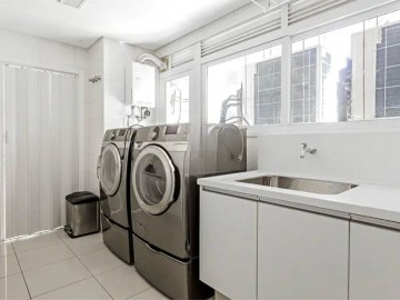 Apartamento à venda com área de 310 metros quadrados, possui 2 dormitórios (sendo 2 suítes), 5 banheiros e 5 vagas de garagem + depósito privativo.