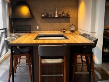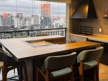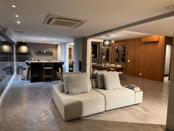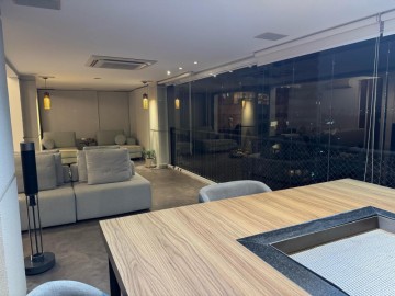 Com 247M², 3 suítes (sendo 1 master), sala para 3 ambientes, amplo terraço Gourmet com churrasqueira à carvão e ar-condicionado cassete, cozinha com copa, área de serviço com banheiro e dormitório para funcionários, hall social privativo, lavabo, móveis planejados em todos os ambientes, piso em taco nas suítes, ar-condicionado, 4 vagas de garagem + depósito.