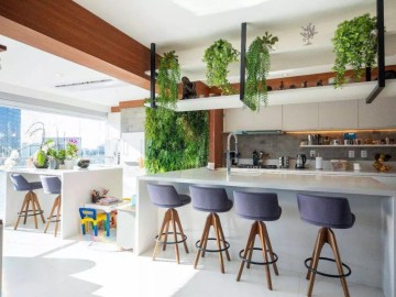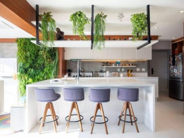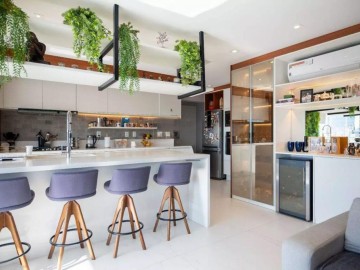 Living com uma vista sensacional, conectando a sala, varanda e cozinha trazendo uma amplitude e aconchego para receber seus familiares e amigos.