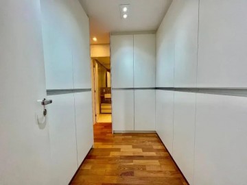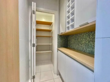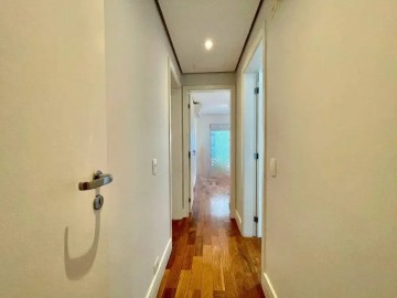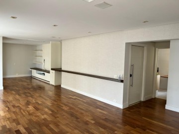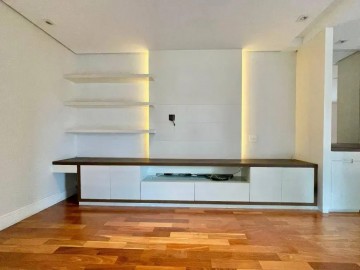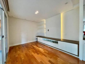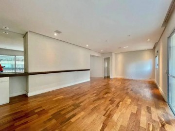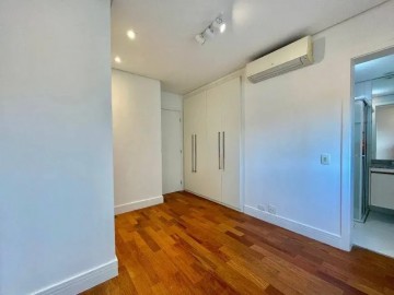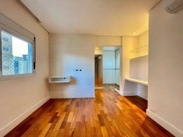 Piso de madeira em todo o apartamento, trazendo aconchego e sofisticação