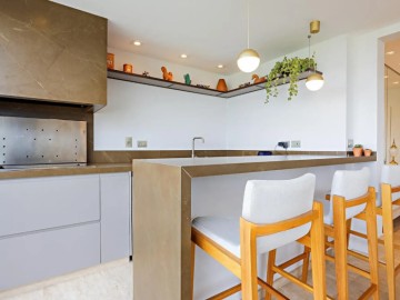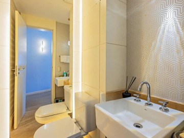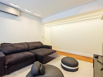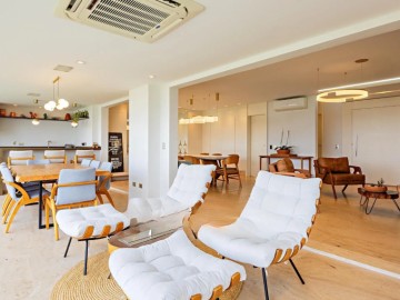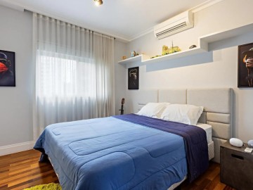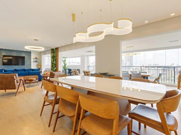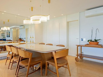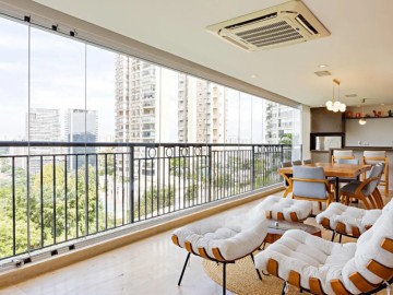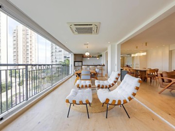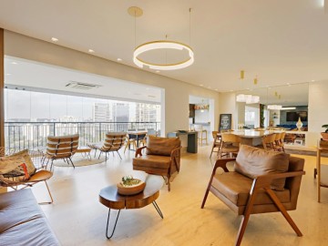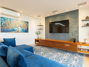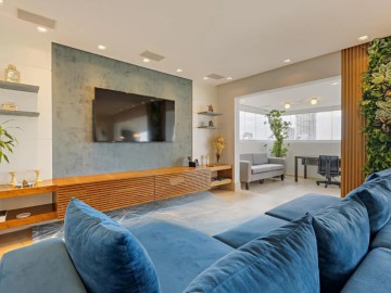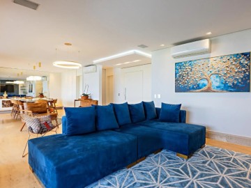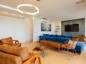 Este imóvel de 247m² de área útil oferece uma experiência única de conforto e sofisticação, com uma vista privilegiada e localização estratégica. O amplo living é integrado à varanda gourmet, proporcionando um ambiente elegante e acolhedor, com piso em mármore travertino bruto. Conta ainda com home theater, escritório, cozinha com copa e dependência para funcionária. Na área íntima, o piso em madeira cumaru valoriza as 3 suítes espaçosas, todas equipadas com armários Ornare.