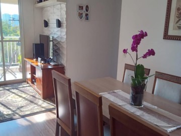 Apartamento à venda com área de 67 metros quadrados, possui 3 dormitórios (sendo 1 suíte), 2 banheiros, móveis planejados na cozinha, ar condicionado, varanda e 1 vaga de garagem.