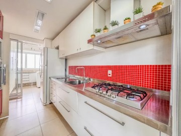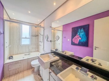 Amplo apartamento à venda com área de 141 metros quadrados, possui 3 dormitórios (sendo 3 suítes), cozinha funcional, 4 banheiros, lavabo, varanda, área de serviço e 2 vagas + depósito.