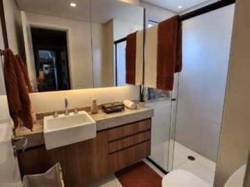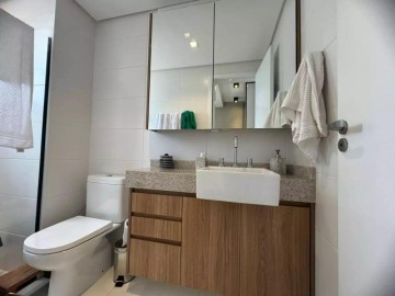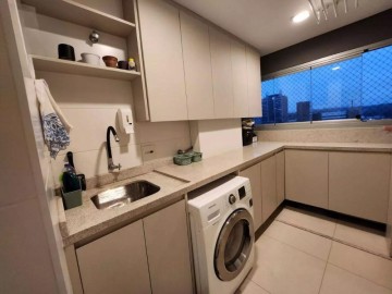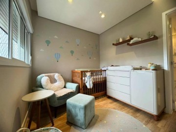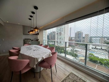 Apartamento à venda com área de 132 metros quadrados, possui 3 dormitórios (sendo 3 suítes), 4 banheiros e 2 vagas de garagem + depósito.