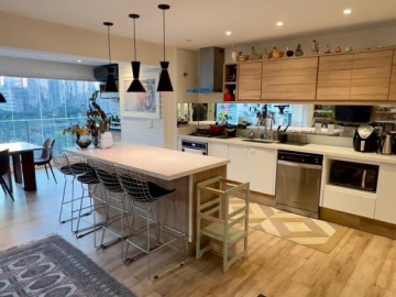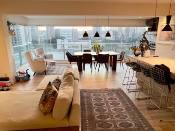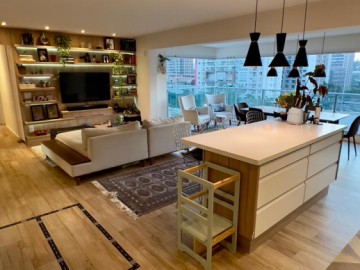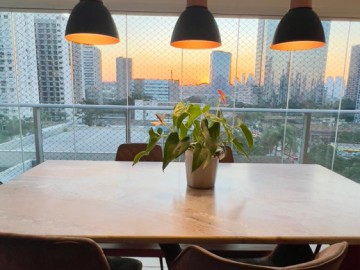 São 3 suítes, sala com 2 ambientes, sala de jantar e tv integrada ao terraço social. 4 banheiros com ventilação e iluminação natural + lavabo, cozinha americana com bastante espaço para armários + área de serviço reservado.