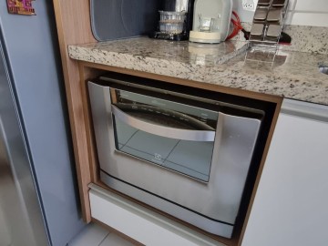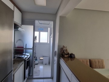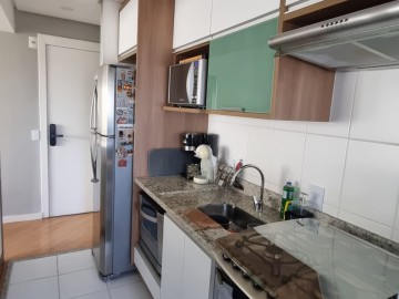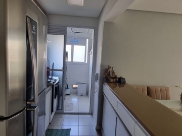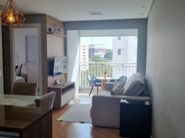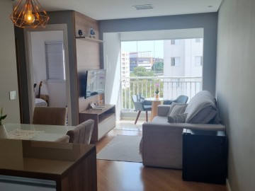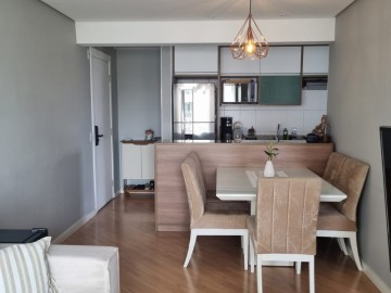 Apartamento à venda com área de 54 metros quadrados, possui 2 dormitórios (sendo 1 suíte), 2 banheiros, sala para 2 ambientes com sacada, cozinha com área de serviço e 1 vaga de garagem.