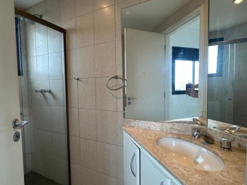 Apartamento para locação com área de 200 metros quadrados, possui 4 dormitórios (sendo 4 suítes), 5 banheiros e 4 vagas de garagem + depósito.