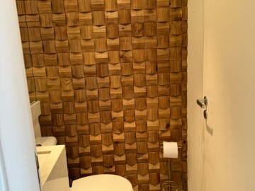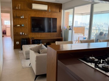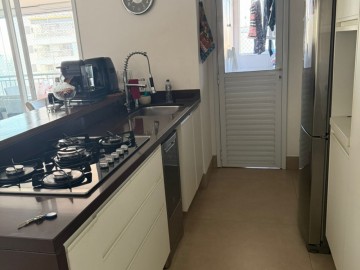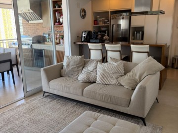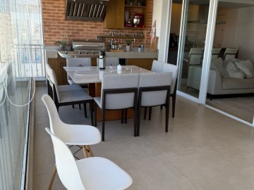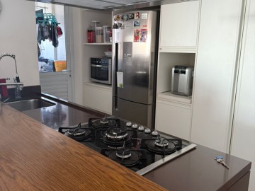 Living integrado a cozinha e ampla varanda gourmet com churrasqueira, ambiente extremamente agradável. Cozinha, área de serviço e dormitórios, todos em marcenaria Florense. Iluminação e ventilação natural em todos os banheiros.