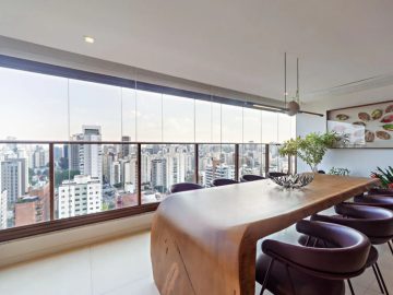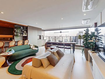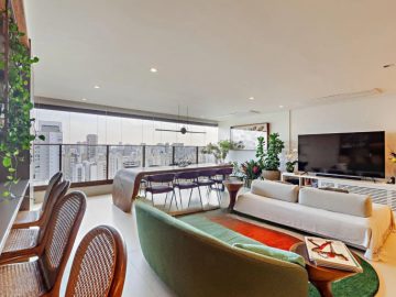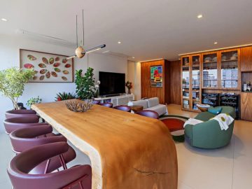 Este apartamento oferece planta funcional com living amplo para 2 ambientes integrado à varanda e à cozinha equipada com marcenaria sob medida. A área social inclui sala de jantar e lavabo, com vista agradável para o pôr do sol. Na área íntima, há uma suíte espaçosa com banheiro Sr. e Sra., closet e ar-condicionado em todos os ambientes. São 2 vagas de garagem.