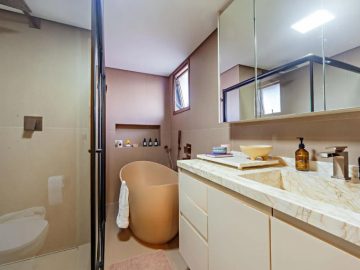Apartamento à venda com área de 110 m², 1 dormitório (sendo 1 suíte), 2 banheiros e 2 vagas + depósito.