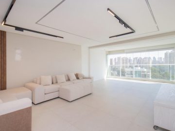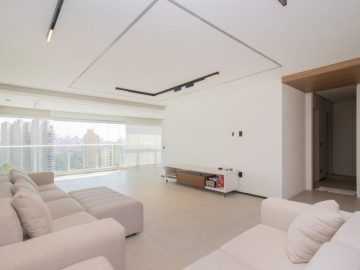 Exclusividade no Panamby 211 m² | 3 Suítes | 4 Vagas | Depósito. Apartamento contemporâneo e recém-reformado, com projeto arquitetônico autoral e acabamentos de alta qualidade. A entrada social é feita por um hall privativo que leva a sala de estar e jantar integradas aos terraços social e gourmet. Conta com projeto de iluminação, revestimentos em porcelanato e um escritório com acesso ao terraço. O lavabo complementa o ambiente com discrição. Cozinha com armários sob medida, acesso direto à lavanderia e entrada de serviço. Possui também dependência completa para colaborador. Área íntima 3 suítes, sendo a principal com amplo closet e banheiro Ele & Ela. Infraestrutura Aquecimento central Gerador para todas as tomadas, 4 vagas demarcadas e Depósito no subsolo.