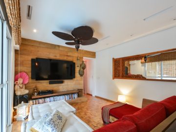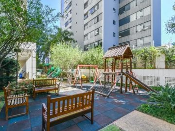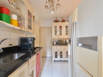 Com 111 m², o apartamento conta com 3 dormitórios (sendo 1 suíte), sala com 2 ambientes, varanda fechada com vidro, cozinha funcional e 2 vagas de garagem.
