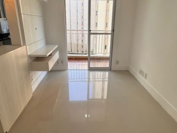 Apartamento à venda com área de 54 metros quadrados, possui 2 dormitórios (sendo 1 suíte), 2 banheiros, sala para 2 ambientes com sacada, cozinha com área de serviço e 1 vaga de garagem.