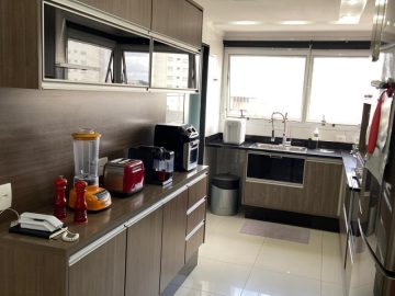 Cozinha planejada com móveis de qualidade, muito funcional com claridade natural e arejada.