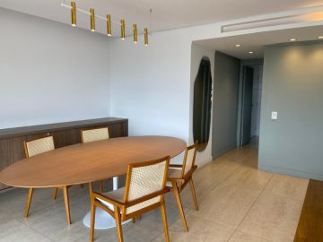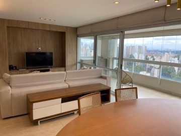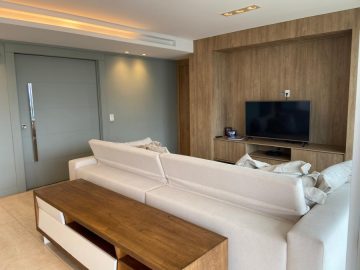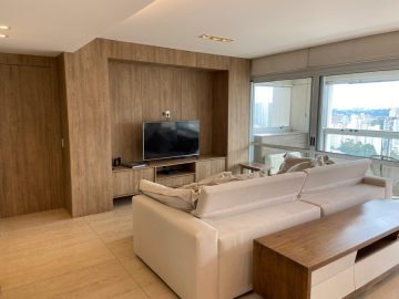 Lindo apartamento à venda em andar alto, com área de 138 m² com vista 360 graus, living para 2 ambientes integrados à varanda gourmet fechada com vidros e piso em porcelanato.