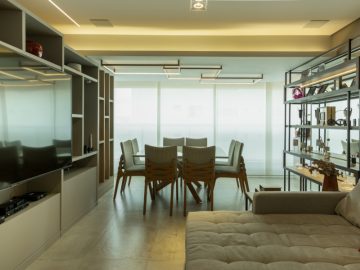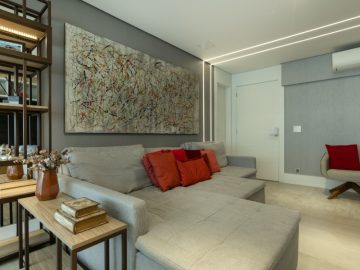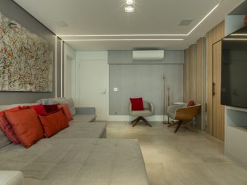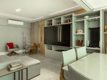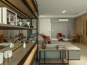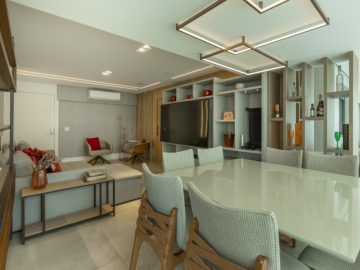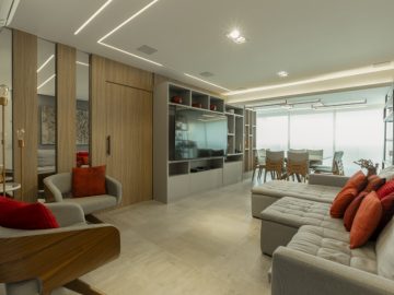 Sala para dois grandes ambientes totalmente integrado com uma excelente varanda.