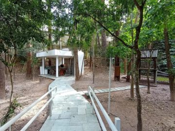 Lazer com Piscina adulto e infantil descoberta, piscina aquecida coberta, mercadinho, academia, sauna, salão de festas, salão de jogos, brinquedoteca, churrasqueira, quadra esportiva e área de bosque privativo com muito verde.