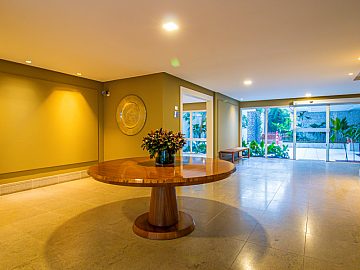 - Hall do elevador, hall de entrada e lavabo com piso mármore crema Marfil