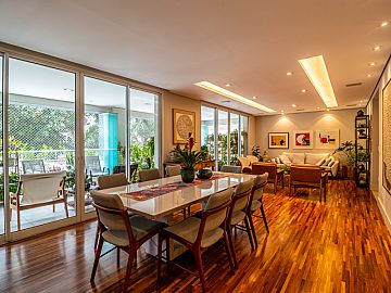 Apartamento de altíssimo padrão à venda no bairro Campo Belo com 274 m², 4 suítes, sendo a master com closet duplo e sacada, Sala íntima, living amplo para dois excelentes ambientes, sala de jantar e lavabo.