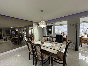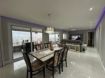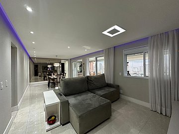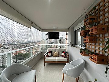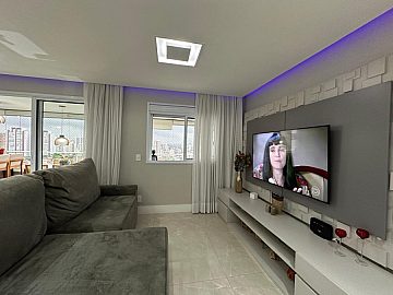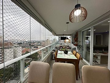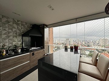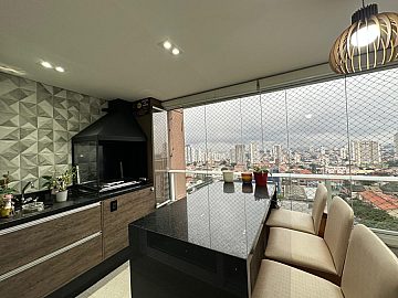 Moderno e aconchegante. Em andar alto possui terraço gourmet fechado com vidros retráteis, sala para 2 amplos ambientes, arejado e ventilado. Armários planejados nas suítes, lavabo, cozinha planejada e espaçosa, prática e funcional. Área de serviço com armários.
