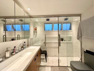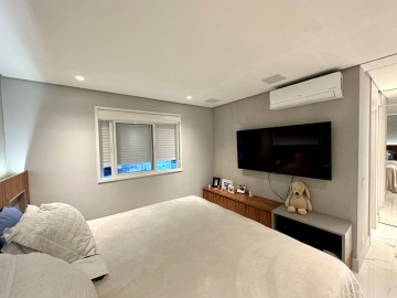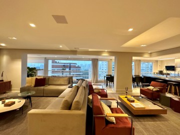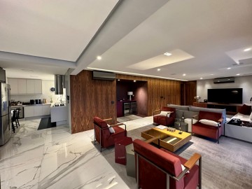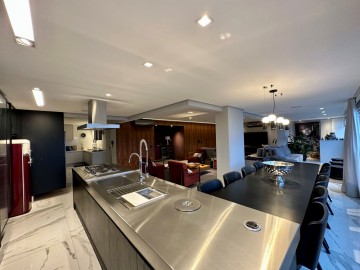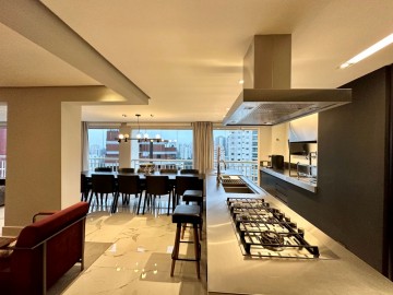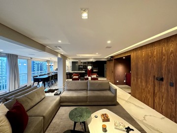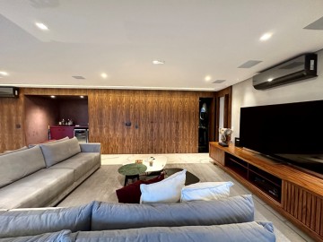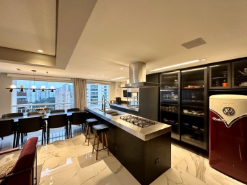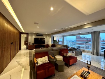 São 200m² com um amplo living integrado ao terraço gourmet, um piso de marmore por todo apartamento, acabamentos finos, marcenaria Ornare, ar condicionado em todos os ambientes e projeto de iluminação. Nesse imóvel o que não falta é amplitude e iluminação natural, além do toque de requinte. A área íntima dispõe de 3 suítes confortáveis, sendo a master com closet, elevador/hall privativo, 3 vagas de garagem fixas e depósito. O condomínio possui uma infraestrutura de lazer completa para toda família, além de contar com um gerador que atende 100% dos apartamentos. Este condomínio é um dos únicos do bairro que possui gerador pra atender 100% das unidades.