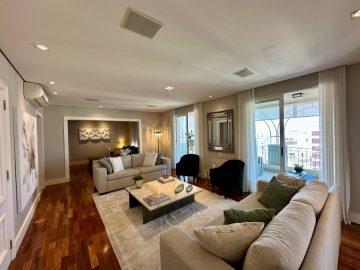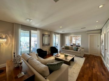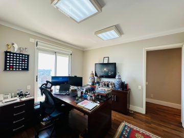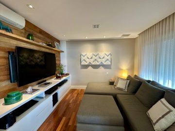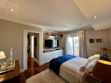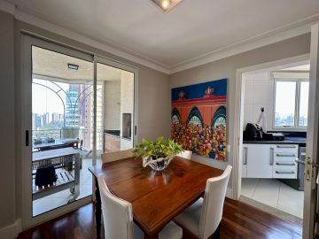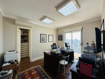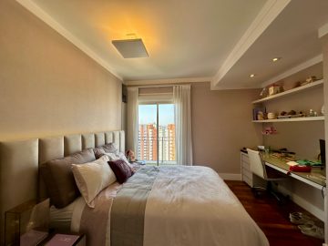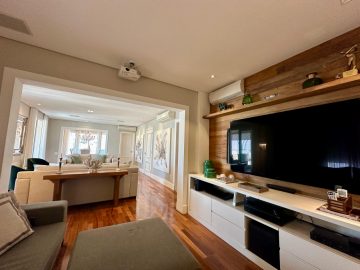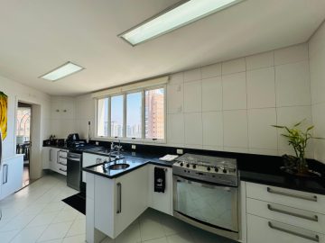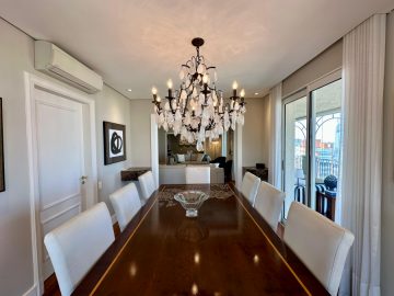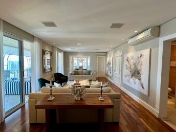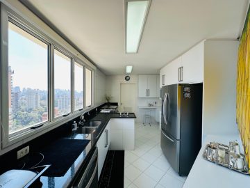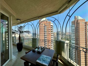 Ampla varanda toda envidraçada, sala com 2 ambientes, lavabo, a r condicionado, armários embutidos, cozinha planejada, despensa, área de serviço, dormitório de serviço e banheiro de serviço..