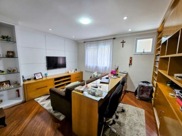 A planta original seriam 4 suítes, mas uma das suítes foi transformada em escritório, mas se for necessário, é fácil de reverter, pois hoje a planta está com 3 suítes + 1 amplo home office! Possui ar condicionado na suíte master. O imóvel possui 1 lavabo, + 4 banheiros!