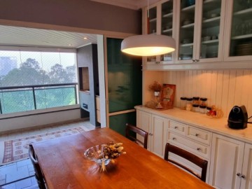 Apartamento à venda com 225M², 3 suítes todas com terraço, planejados laqueados da Ornare e piso Cumaru, sendo 1 máster com closet e hidro. Sala íntima, sala de TV e sala de estar com lareira, escritório, terraço Gourmet com churrasqueira, cozinha com planejados Elgin, despensa, lavabo, área de serviço com suíte para funcionarios, 4 vagas de garagem + depósito privativo no subsolo..