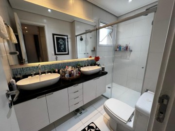Apartamento à venda com área de 126 metros quadrados, possui 3 dormitórios (sendo 3 suítes), 4 banheiros, e 3 vagas de garagem + depósito..