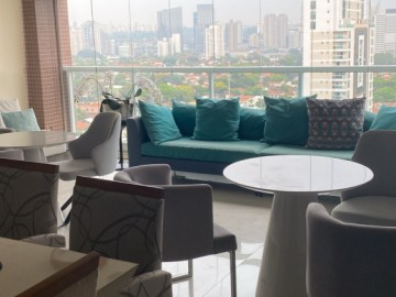 Apartamento à venda com área de 258 metros quadrados, possui 3 dormitórios (sendo 3 suítes), 4 banheiros e 5 vagas de garagem.
