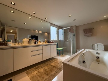 Apartamento à venda com área de 300 metros quadrados, possui 3 dormitórios (sendo 3 suítes), 4 banheiros, 4 vagas de garagem + depósito completo.