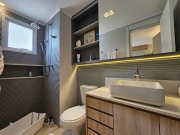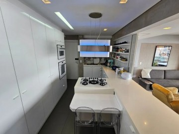 Apartamento à venda com ára de 128 metros quadrados, possui 2 dormitórios (sendo 2 suítes), 3 banheiros, 3 vagas de garagem + depósito.