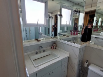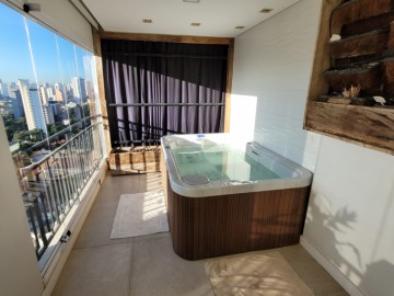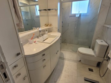Apartamento bem amplo, com acabamento estruturado, com 3 dormitórios sendo 3 suítes. Cozinha ampliada com ilha gourmet, banheira hodromassagem, persiana elétrica, iluminacão de LED e som nos banheiros.