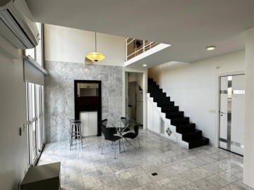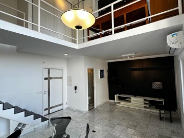 Apartamento Duplex à venda com área de 84 metros quadrados, possui 1 dormitório (sendo 1 suíte), 2 banheiros, e 2 vagas de garagem + depósito.