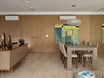 Excelente opção para quem procura uma decoração clean, criando ambientes mais amplos e aconchegantes. Planta generosa com 157 m² muito bem distribuída, 03 suítes oferecendo bastante conforto. A integração do living com varanda também é um ótimo toque, especialmente para momentos de descontração. E as 3 vagas de garagem são um bônus!