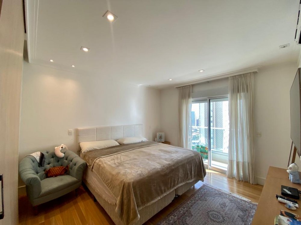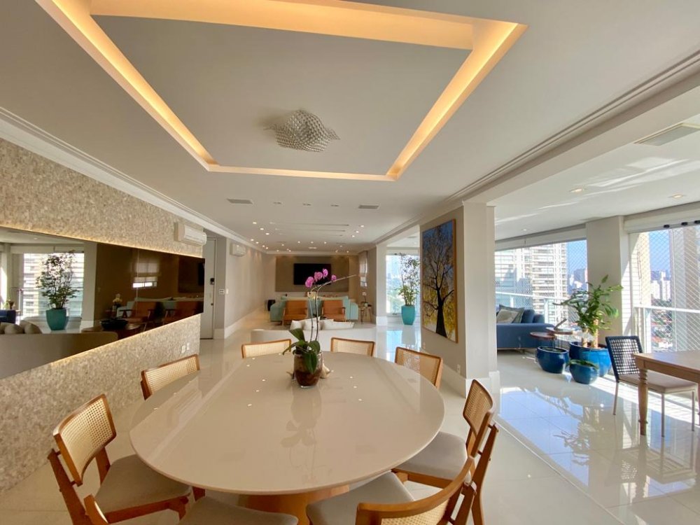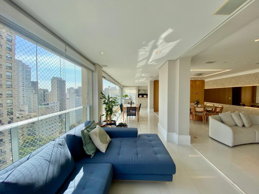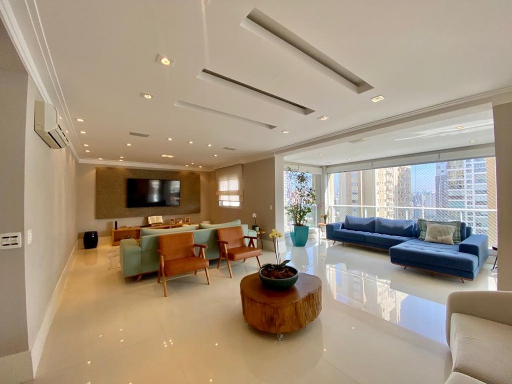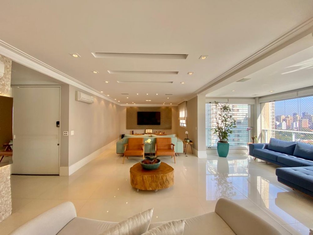 Maravilhoso apartamento com 274m² à venda no Campo Belo. Amplo living com 3 ambientes, varanda gourmet com churrasqueira à carvao integrada à cozinha e sala, cozinha com despensa e repleta de armários, 3 suítes sendo a suíte master com banheiro Sr. e Sra e repleta de armários, e um dormitório a mais sendo usado como brinquedoteca e que você pode usar também como escritório. Ar condicionado em todos os ambientes, forro e iluminação em perfeito estado. O condomínio oferece uma excelente infraestrutura de lazer e está numa localização privilegiada. Rua tranquila e arborizada, próximo de tudo.