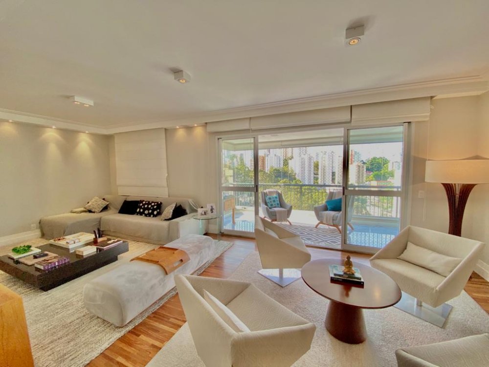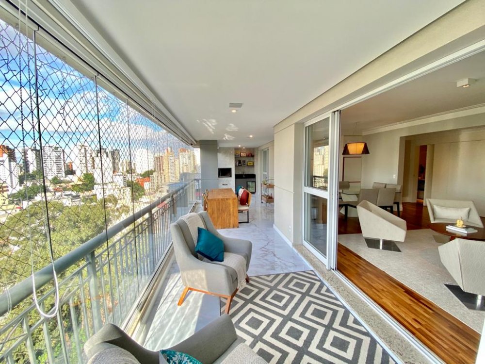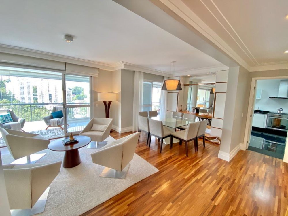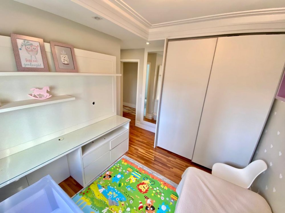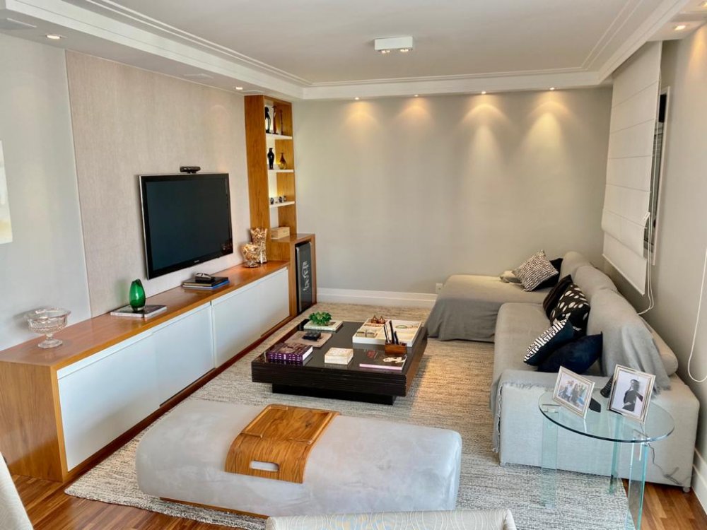 Apartamento com 195m², planta original de 4 dormitórios(porém foi alterada pra 3 suítes, ficando uma sala enorme pra 3 ambientes, podendo reverter pra 4 dormitórios), varanda gourmet em L integrada à cozinha e living e 4 vagas de garagem. O imóvel está impecável, com piso de madeira em toda sala e dormitórios, piso de porcelano líquido na varanda, cozinha e área de serviço. Muito bem cuidado, o mesmo é repleto de armários e ótima iluminação. Todos os banheiros com ventilação natural. Rico em sol(pega sol o dia inteiro) e uma vista incrível no terraço. Próximo aos Shoppings Jardim Sul e Mourmbi Town..