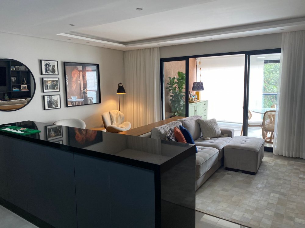 Cozinha americana, integrada com sala e varanda, Piso porcelanato em todos os comodos.